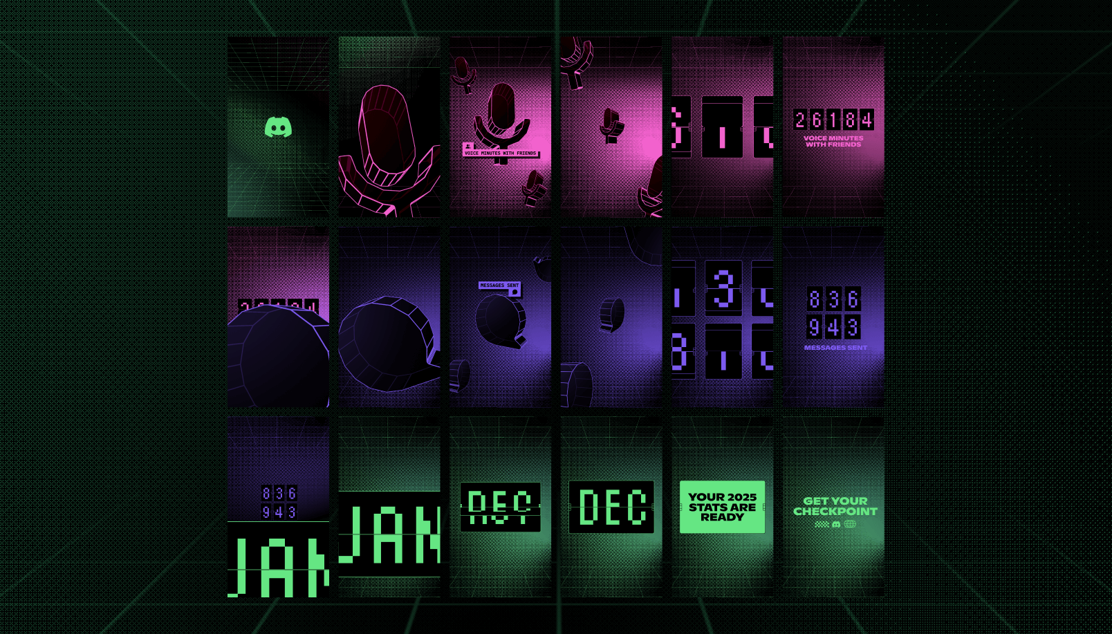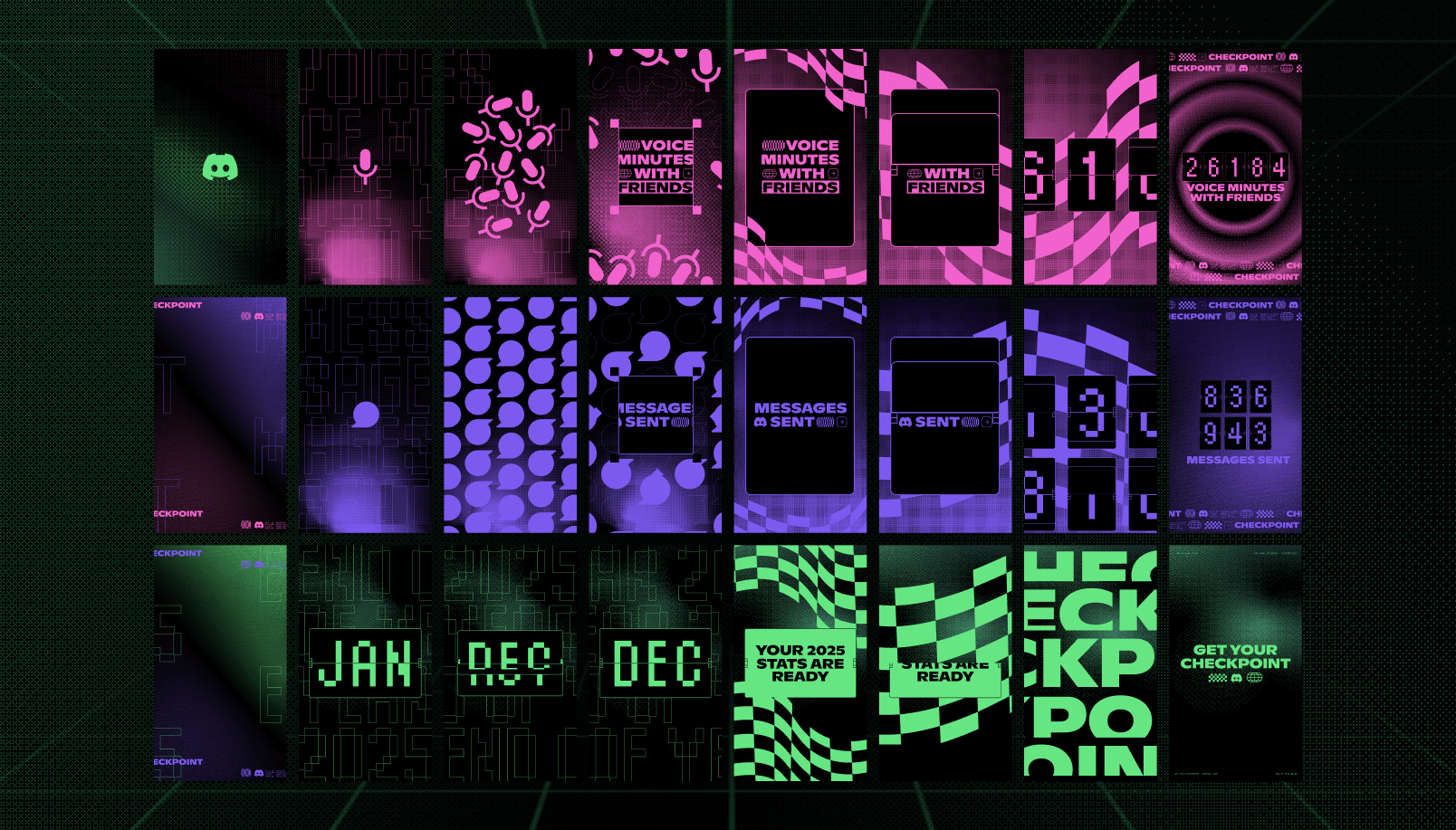 To extend the moment beyond the hero video, we translated the same visual language into a toolkit of social assets. We created blog banners and infographics highlighting platform-wide stats, along with templates that frame Checkpoint’s game awards and top creators. A dedicated awards graphic tied the recognition program together, giving Discord a cohesive system to celebrate the year across all of social.