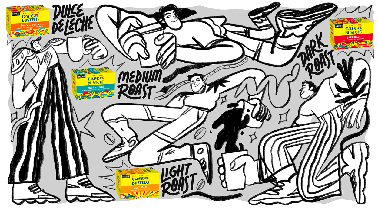 When Cafe Bustelo and Amazon Ads invited us to create a campaign inspired by Barrio murals we knew immediately that authenticity would be our guidepost. Because these murals are so integral to the Latin American community and art scene, we did an extensive search into the art world to find the right artist to bring this style to life for the brand. Partnering with Yann Valber, a native of Brazil, we worked directly with Yann to develop a single digital mural inspired by four flavors.